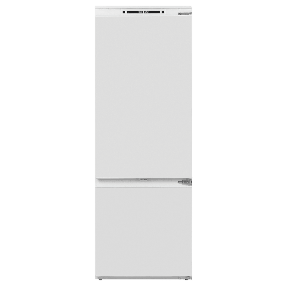 Встраиваемый двухкамерный холодильник шириной 69 см и высотой 193 см TOTAL NO FROST с инверторным компрессором и многопоточным охлаждением, с большой светящейся LED панелью на задней стенке и широкой сенсорной панелью управления, зоной свежести Fresh Zone и тонированными выкатными ящиками с металлизированной отделкой