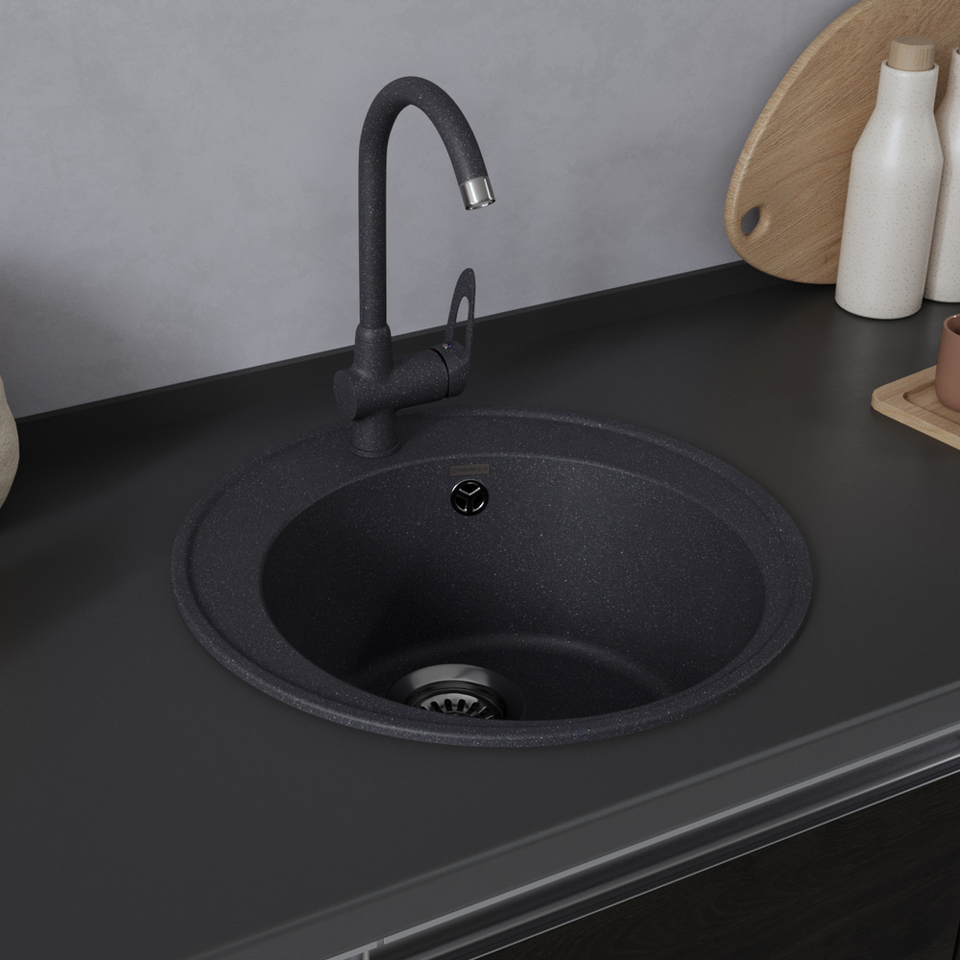 Кварцевый композит является поистине инновационным материалом в производстве кухонных моек! Он сочетает в себе такие неоспоримые преимущества как повышенная влагостойкость и термостойкость, возможность придать мойке при изготовлении практичный и функциональный дизайн, увеличенное сопротивление внешнему износу, снижение уровня шума при падении струи воды, безусловная гигиеничность и простота в уходе, а также сравнительно малый вес при высокой прочности.