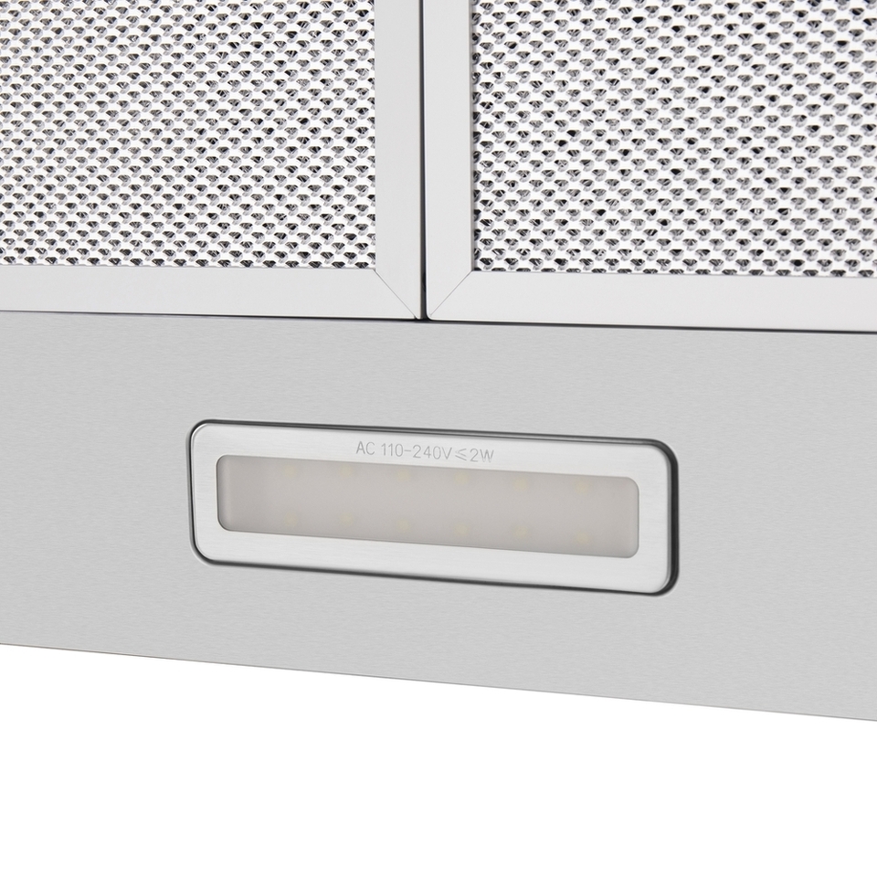 Вытяжка выполнена полностью из матированной нержавеющей стали. Большая площадь рабочей зоны, состоящей из двух многослойных жироулавливающих фильтров, позволяет эффективно захватывать загрязненный воздух на кухне большой площади (до 20 кв.м). Фильтры легко снимаются и в случае необходимости очистки полностью разбираются.