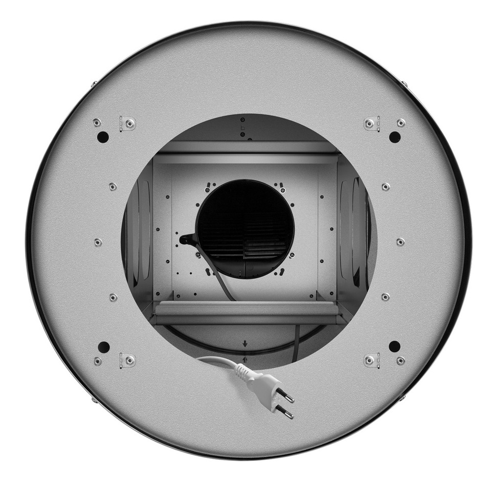 Уникальная вытяжка цилиндрической формы шириной 38 см с потолочным креплением. Благодаря своим техническим характеристикам может использоваться на большой кухне.