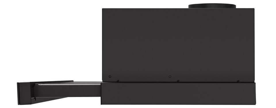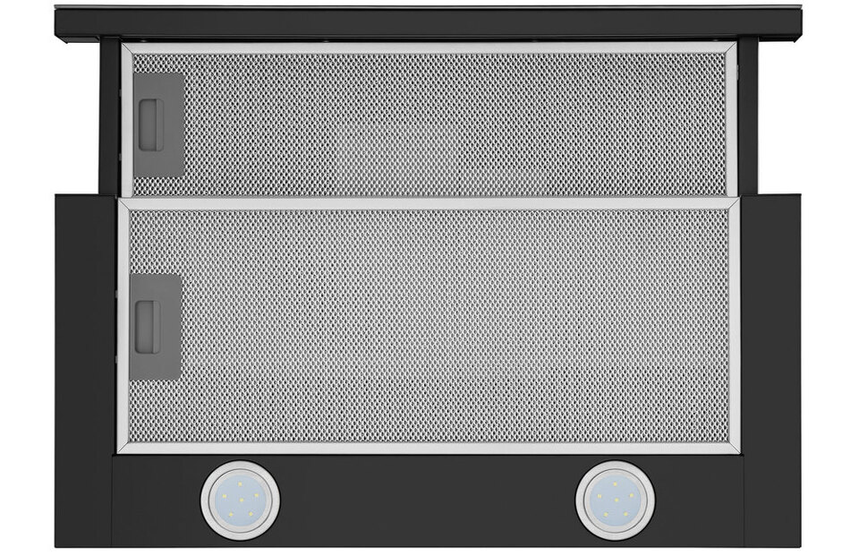 Корпус сделан из нержавеющей стали с качественным покрытием черного цвета. Фасад выдвижной панели из закаленного стекла выполнен в цвет корпуса. Два многослойных жироулавливающих алюминиевых фильтра легко вынуть из вытяжки и помыть при необходимости.