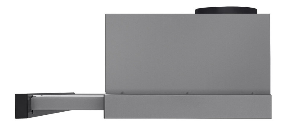 Классическая встраиваемая вытяжка шириной 60 см выполнена из нержавеющей стали. Телескопический козырек с дополнительным алюминиевым жироулавливающим фильтром.