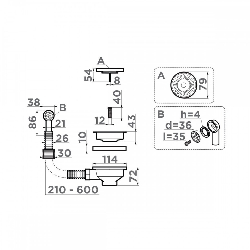 • Перелив и выпуск со стоп-вентилем не допускает попадание мусора в сливное отверстие;