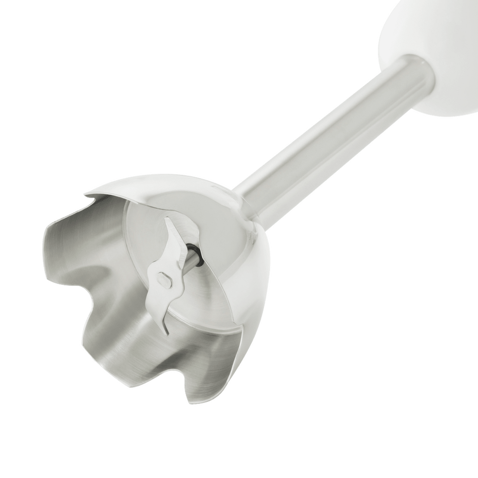 Блендер снабжен двумя прорезиненными клавишами управления, включающих скоростной режим и режим турбо. Скорость плавно регулируется в верхней части блендера. Погружная насадка блендера с двумя ножами также выполнена из нержавейки, что значительно увеличивает ее срок службы, а также позволяет использовать ее для работы с горячими продуктами.