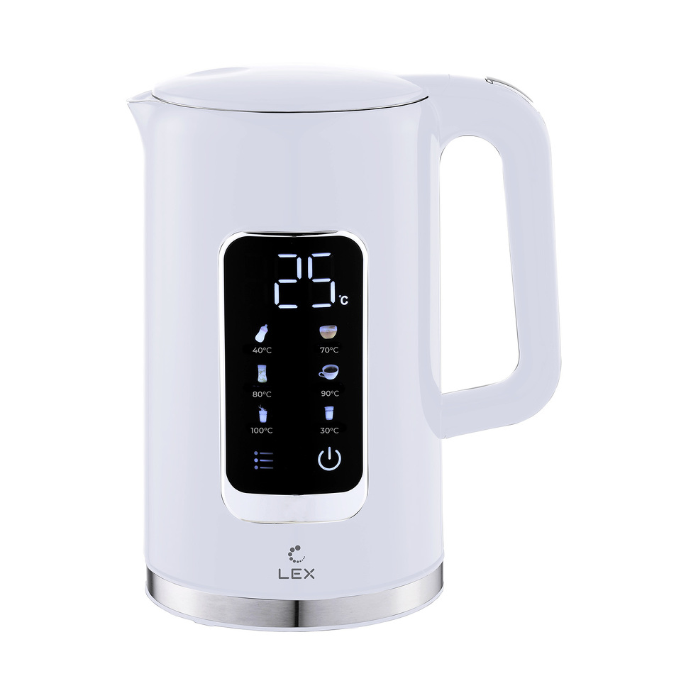 Lex LXK 30025-1, чайник стальной с двойнами стенками ( белый)
