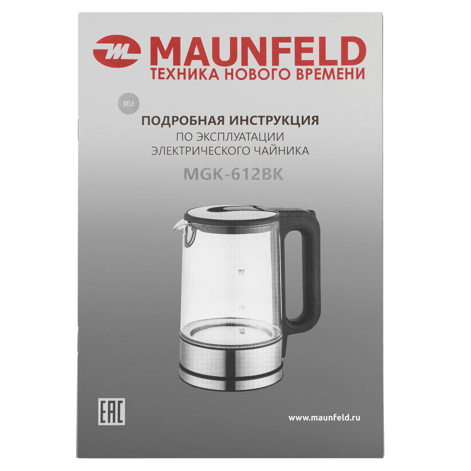 Индикатор уровня воды нанесен непосредственно на стеклянную колбу. Автоматическое открывание крышки осуществляется кнопкой, расположенной в верхней части теплоизолированной пластиковой ручки. Чуть ниже находится кнопка включения/выключения. В носике крепится съемный фильтр, который легко достается и моется.