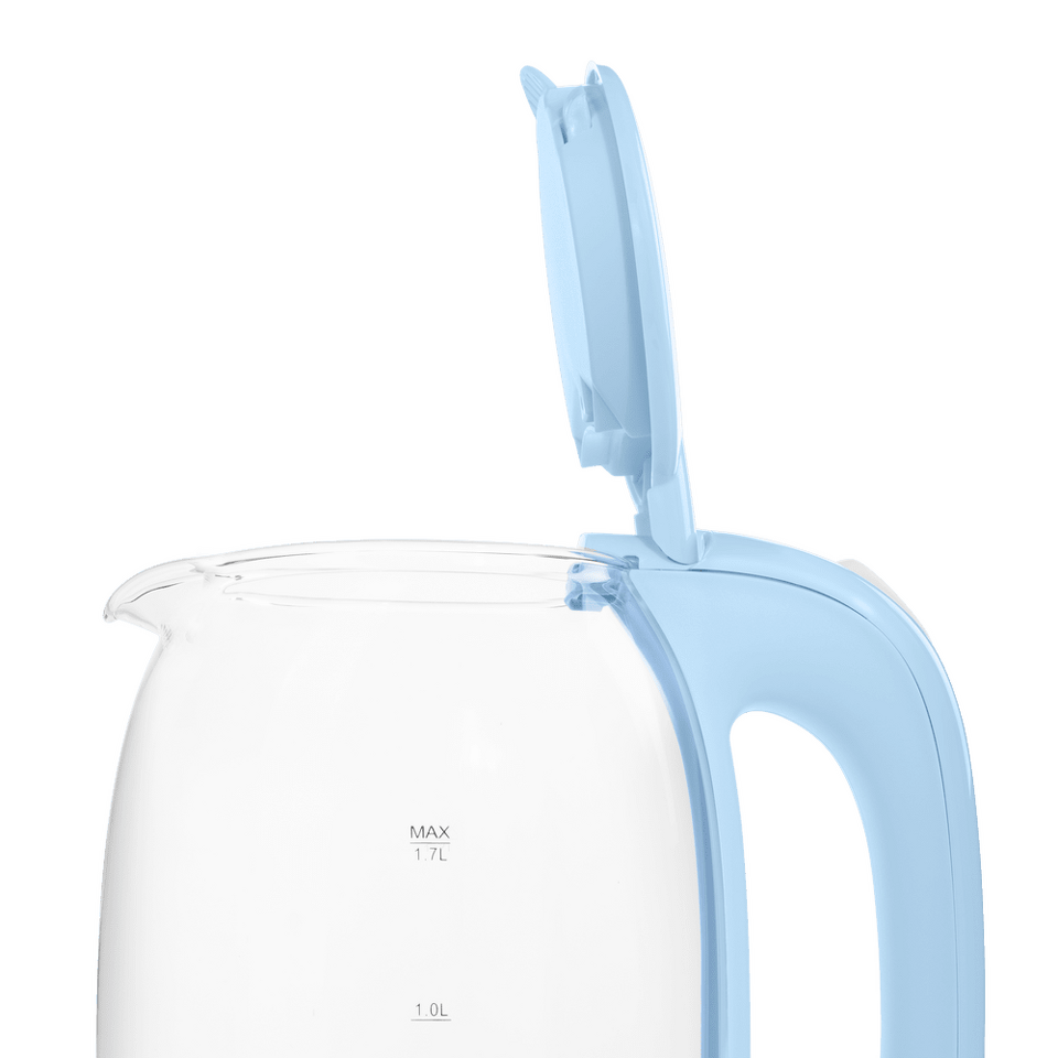 Элегантный чайник мощностью 2 200 Вт и объемом 1,7 литра позволит вскипятить воду для большой семьи или компании.