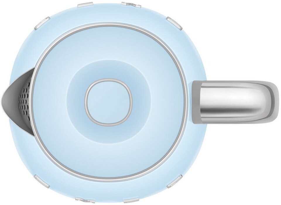 Электрический чайник SMEG KLF05PBEU выполнен в пастельных тонах синего цвета и отлично дополнит интерьер светлой кухни. Это устройство надежно и прочно, поскольку его внутренний корпус изготовлен из твердой легированной стали, устойчивой к загрязнениям, высоким температурам, и не подвержен ржавчине. Такой материал прост в использовании и не требует больших усилий по очистке.