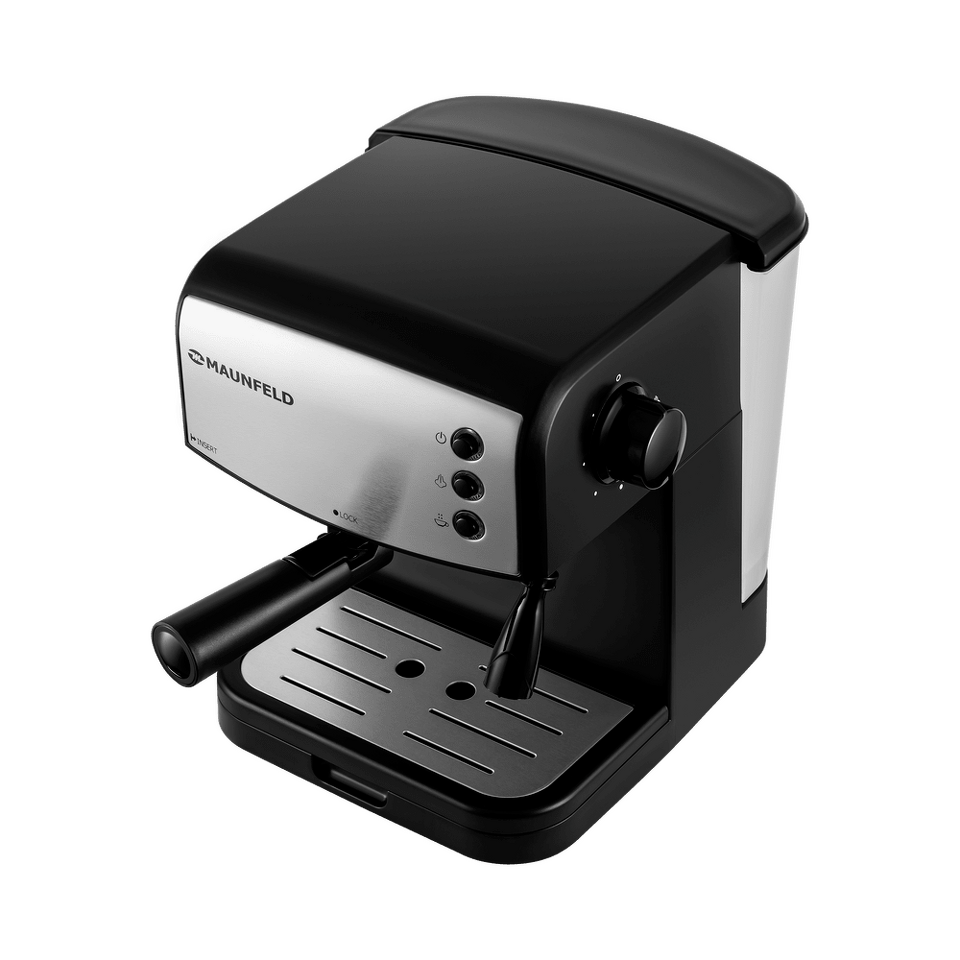 Современная рожковая кофемашина мощностью до 850 Вт из нержавеющей стали и черного пластика – это исполненная мечта кофемана. Давление в 15 бар, создаваемое в кофеварке, позволит получить прекрасный кофе за несколько секунд. Большой контейнер для воды на 1,5 л сделан из матового пластика.
