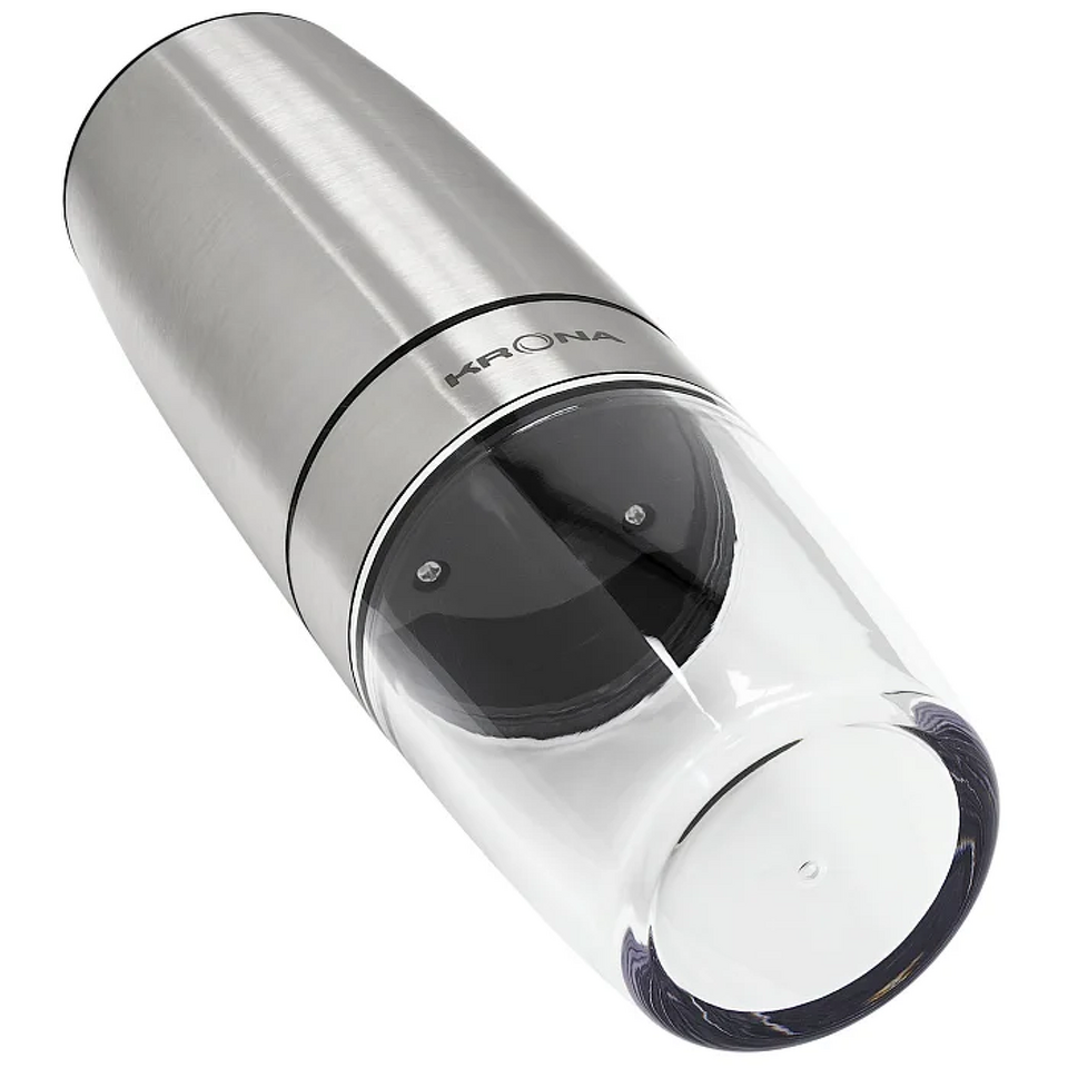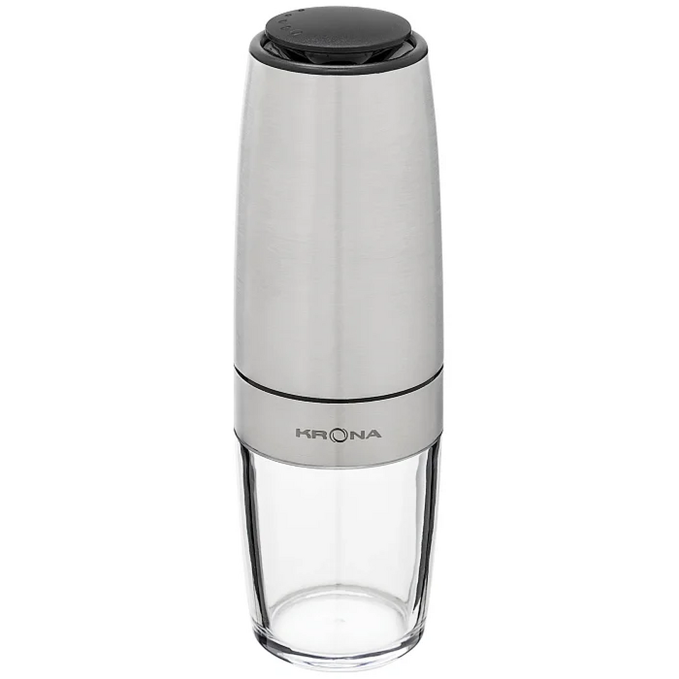 Электрический измельчитель KRONA Salz Pfeffer Schwerkraft Inox — функциональный помощник для легкого и быстрого измельчения соли, а также большинства специй и трав. Благодаря технологичной системе гравитационного управления достаточно повернуть измельчитель на 90 градусов — и он автоматически начнет работу. Прочные керамические жернова гарантируют длительный срок службы и безупречное измельчение. Плавная регулировка степени помола позволяет настроить прибор под ваши предпочтения. Матовый металлический корпус не только привлекает внимание своим современным видом, но и отличается высокой прочностью. Съемный вместительный контейнер объемом 120 мл (68 г) удобен для хранения специй. Устройство работает от 6 батареек типа ААА и поставляется в индивидуальной цветной упаковке. Сделайте процесс приготовления блюд еще приятнее с KRONA Salz Pfeffer Schwerkraft Inox.