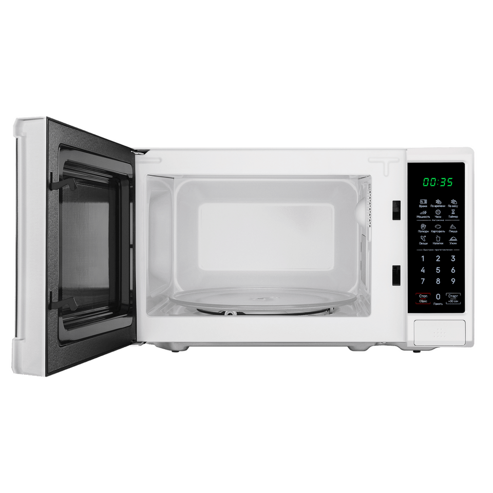 Отдельностоящая микроволновая печь с электронной панелью управления, дисплеем.