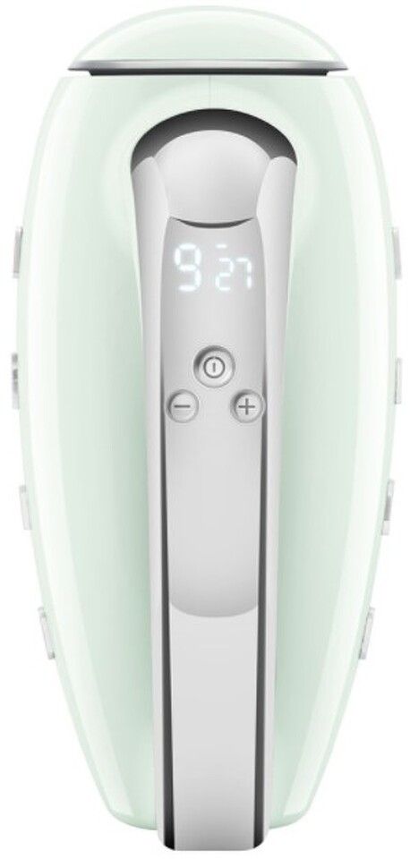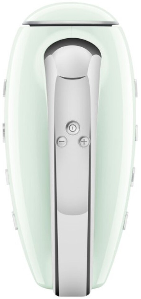 Ручной миксер SMEG HMF01PGEU представлен в пастельном оттенке зеленого цвета. С ним вам будет еще приятнее заниматься готовкой блюд.