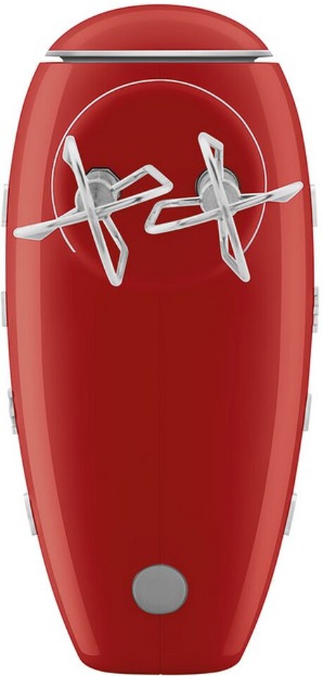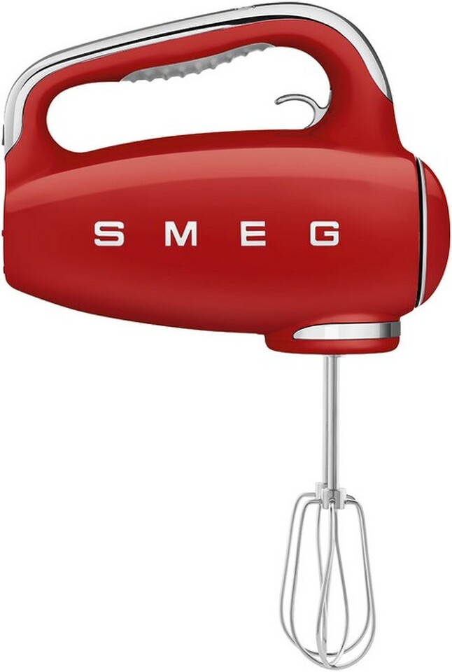 Ручной миксер Smeg HMF01RDEU выполнен в красном цвете и прекрасно дополнит другую технику из линейки «Стиль 50-х годов». На LED-дисплее отображается таймер подсчета минут и секунд. 9 скоростей удобно регулируются при помощи кнопок, расположенных на ручке.