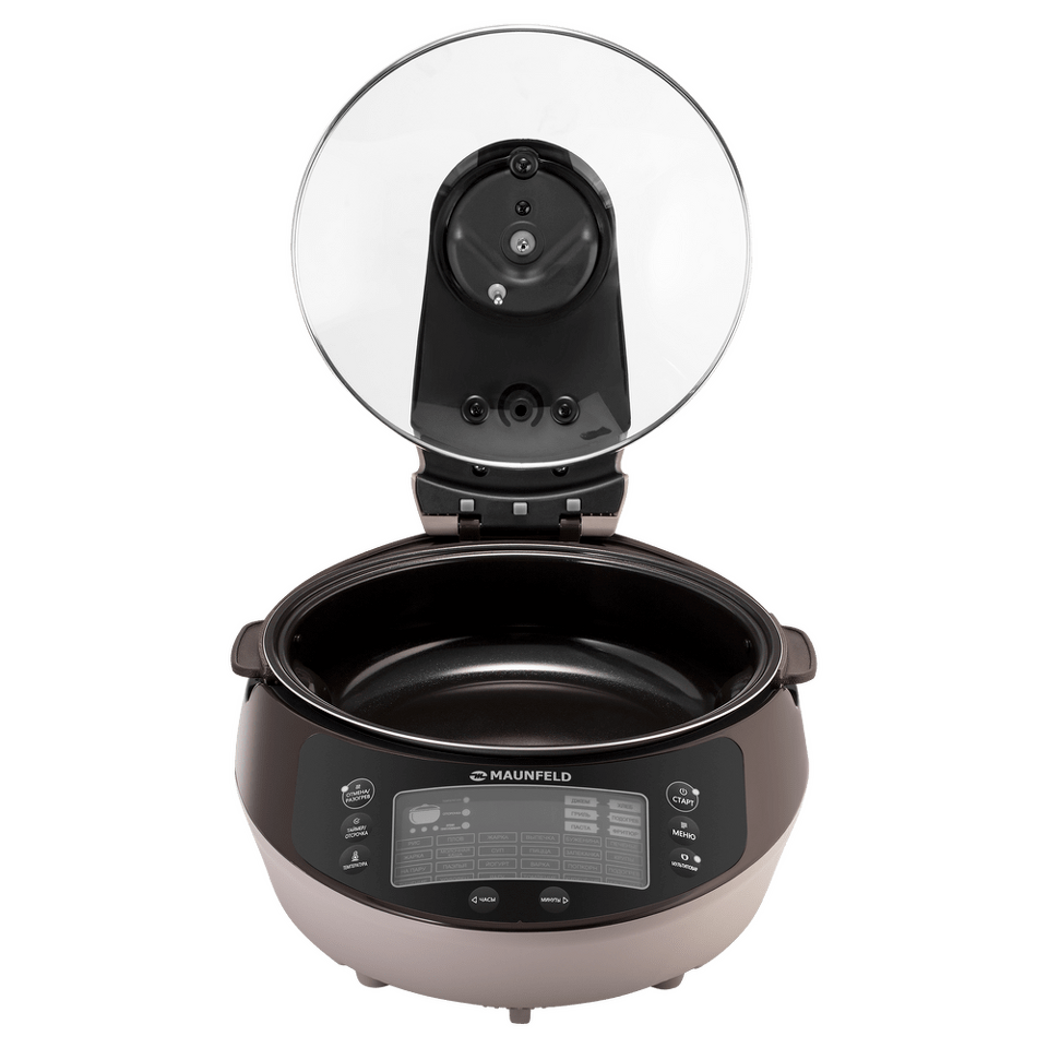 Стеклянная крышка позволяет наблюдать за готовностью блюд не открывая ее