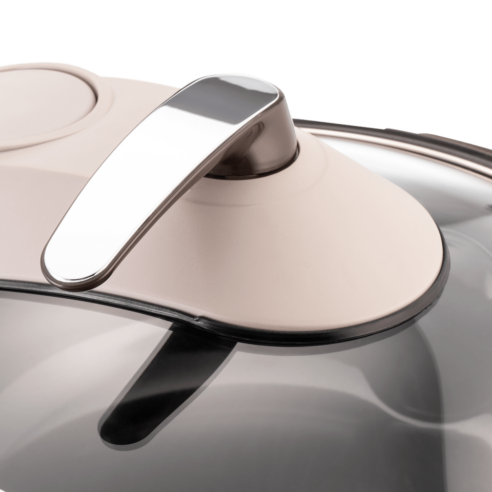 Удобная поворотная ручка на стеклянной крышке предусмотрена для правшей и левшей