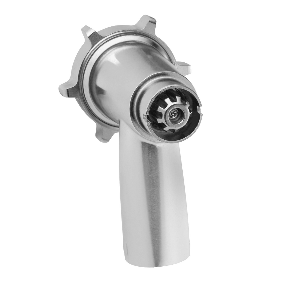 Корпус выполнен из металла. Сама насадка-мясорубка сделана полностью из металла и укомплектована 2 дисками с разным диаметром отверстий, что позволяет получить фарш разной фракции. Поддон для подачи мяса в мясорубку сделан из алюминия.