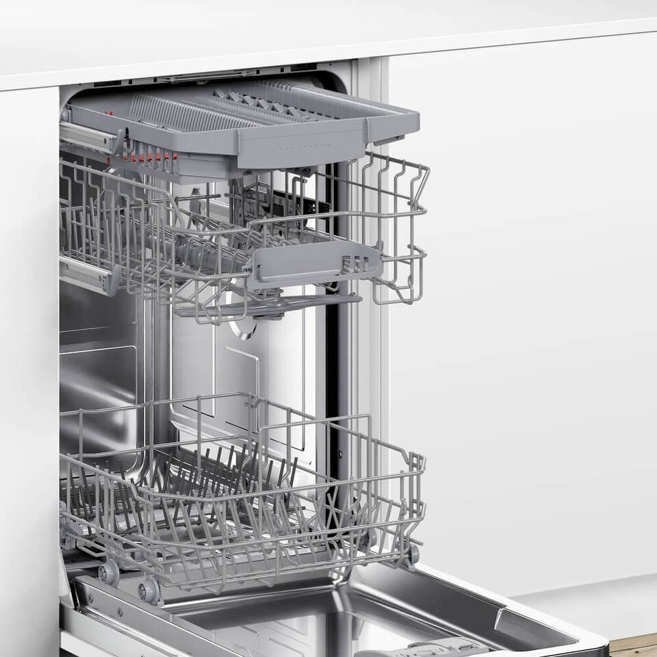 Встраиваемая посудомоечная машина Bosch SPV4EMX10E - это высокотехнологичное устройство, которое обеспечивает эффективное и качественное мытье посуды. Модель встраиваемой посудомоечной машины отличается узким дизайном, что позволяет ей идеально вписываться в любую кухню, не занимая лишнего пространства. Панель управления, выполненная из нержавеющей стали, придает ей современный и стильный вид. Благодаря закрытому типу панели управления, все кнопки и индикаторы находятся под защитой от влаги и пыли.