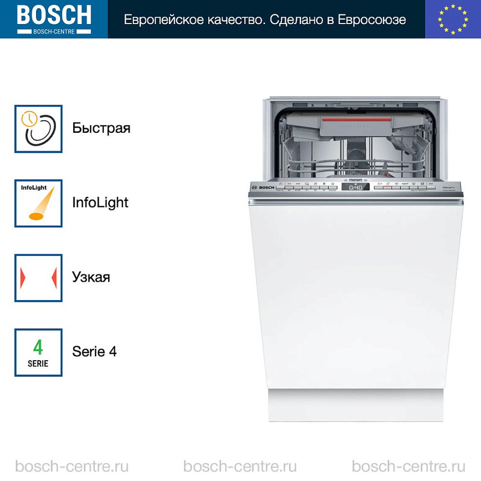 Встраиваемая посудомоечная машина Bosch SPV4HMX65Q — это сочетание элегантного дизайна и высоких технологий. Узкая и компактная, она идеально впишется в любой интерьер, сохраняя при этом большое пространство для посуды. Панель управления из нержавеющей стали придает модели современный и стильный вид, а закрытый дизайн обеспечивает удобство использования. Модель оснащена инверторным двигателем EcoSilence Drive, который обеспечивает тихую и эффективную работу.