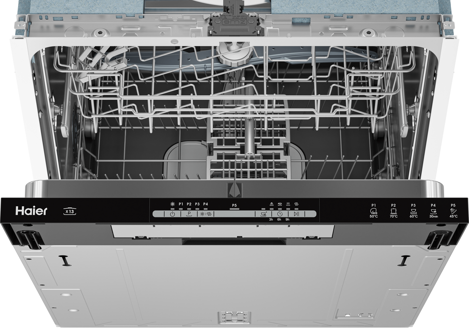 Полноразмерная встраиваемая посудомоечная машина шириной 60 см HDWE13-490RU рассчитана на загрузку до 13 стандартных комплектов посуды, что отлично подойдет для большой семьи и для любителей готовить. Удобный набор программ включает в себя стандартный, ЭКО и интенсивный режимы, а также отдельное полоскание и быструю программу для случая, когда нужно сэкономить время мытья посуды. Фильтр в данной модели изготовлен из специального антибактериального материала, и это препятствует размножению бактерий в местах потенциального скопления остатков пищи. Еще одна особенность конструкции этой посудомоечной машинки: дно внутренней камеры изготовлено из специального термоустойчивого и экологичного пластика.