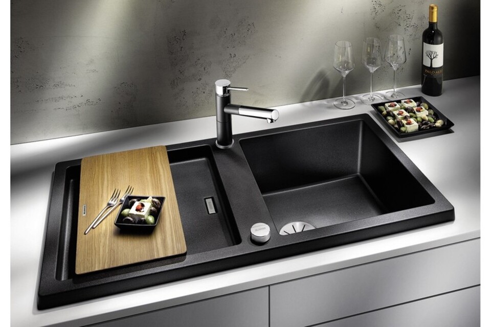 В комплект входит многослойная разделочная доска из пластика и древесины ясеня. Отводная арматура и клапан-автомат InFino® просты в уходе.