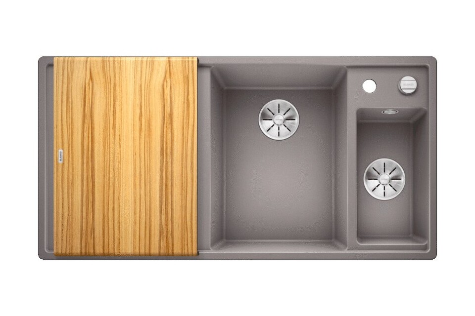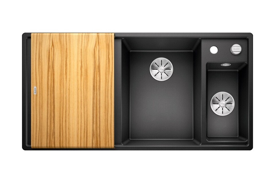 Гранитная мойка Blanсo AXIA III 6 S-F SILGRANIT PuraDur антрацит чаша справа, доска ясень c кл.-авт. InFino