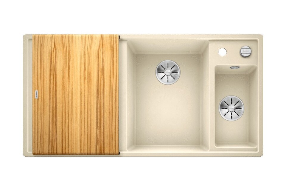 Гранитная мойка Blanсo AXIA III 6 S-F SILGRANIT PuraDur белый чаша справа, доска ясень c кл.-авт. InFino