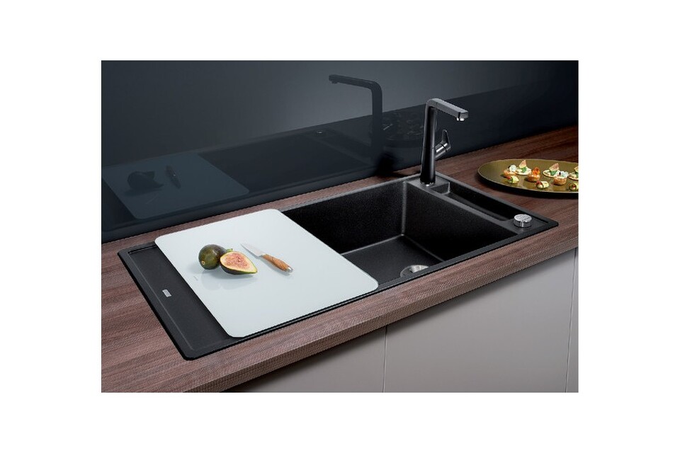 Модель устанавливается в шкаф шириной 60 см. В комплекте поставляется разделочная доска из безопасного стекла белого цвета, которая легко скользит вдоль поверхности мойки, а также отводная арматура InFino® с клапаном-автоматом.