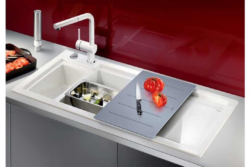Фото Гранитная мойка Blanсo AXON II 6 S (чаша слева) керамика PuraPlus глянцевый белый  с кл.-авт. InFino