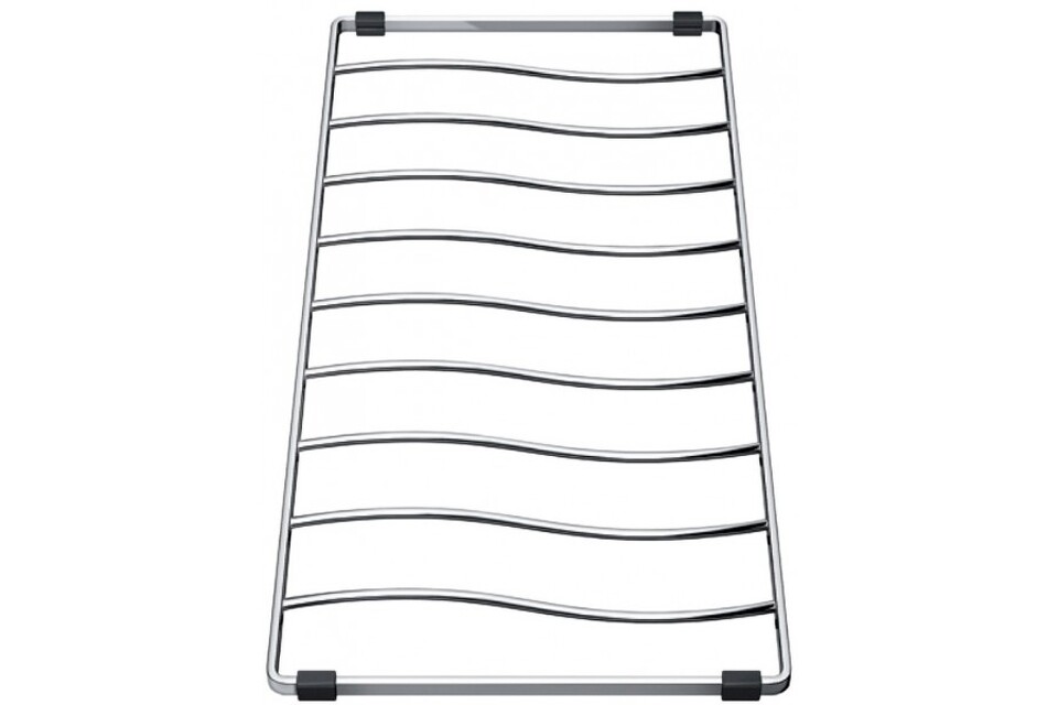 Данная модель оснащена клапаном-автоматом, изготовленным по технологии InFino. При нажатии на кнопку корзинчатый вентиль перекрывает или открывает слив, что позволяет экономить воду и при этом уберечь руки от погружения в неё. В комплект также входит накладная решётка из нержавеющей стали. На ней удобно сушить посуду вроде чашек и тарелок. Столовые приборы стоит класть аккуратно, чтобы не упали.