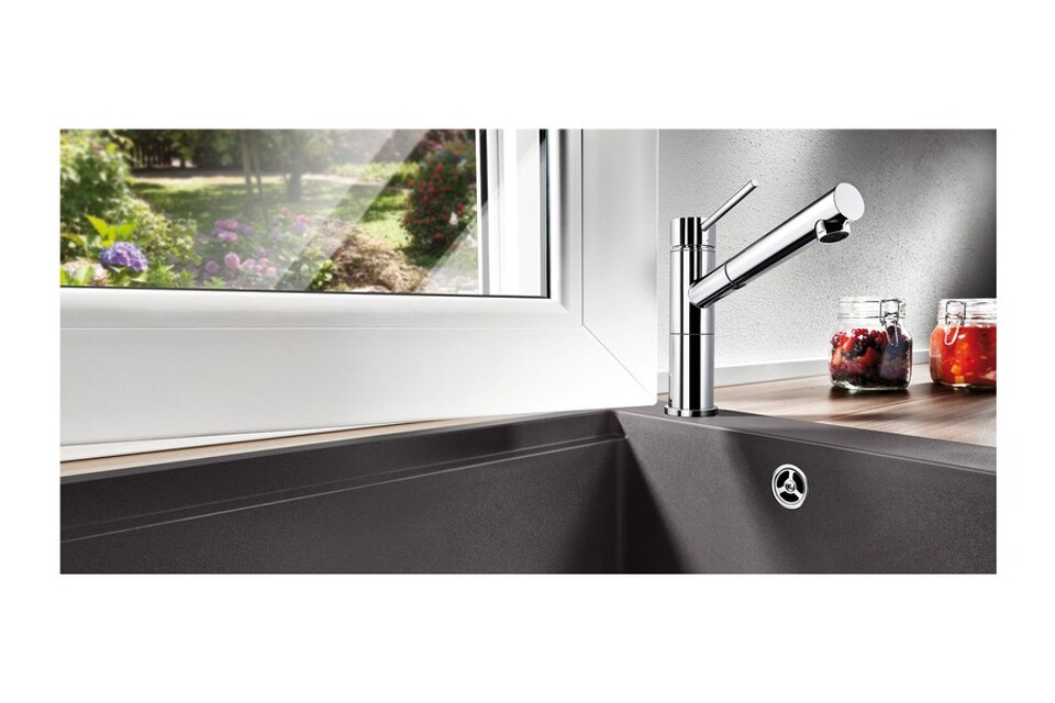 Ширина данной Мойки Blanco Elon XL 8 S SILGRANIT PuraDur составляет целых 86 см, при этом параметры чаши 50×41 см при глубине почти двадцать сантиметров. Это достаточно удобно, поскольку внутрь поместятся даже сотейники и габаритные кастрюли. Цвет антрацит для такого рода изделий достаточно нетипичный. При этом он отлично впишется в современный, а также ретро-интерьер. Принято считать, что на нём меньше видно разводов и грязи. Но, тем не менее, раковина требует ухода. Хотя он будет прост, поскольку модель изготовлена из силгранита.