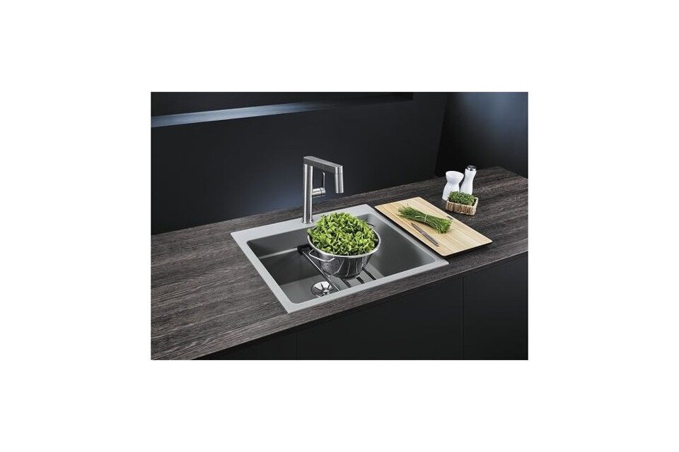 Мойка Бланко ETAGON 6 изготовлена из высококачественного композитного гранита и имеет богатый выбор цветовых решений, что позволяет подобрать подходящий вариант для абсолютно любого интерьера кухни. Интегрированный уступ внутри чаши с возможностью установить специальные держатели ETAGON создает дополнительный функциональный уровень. Скрытый перелив и отводная арматура InFino просты в уходе.