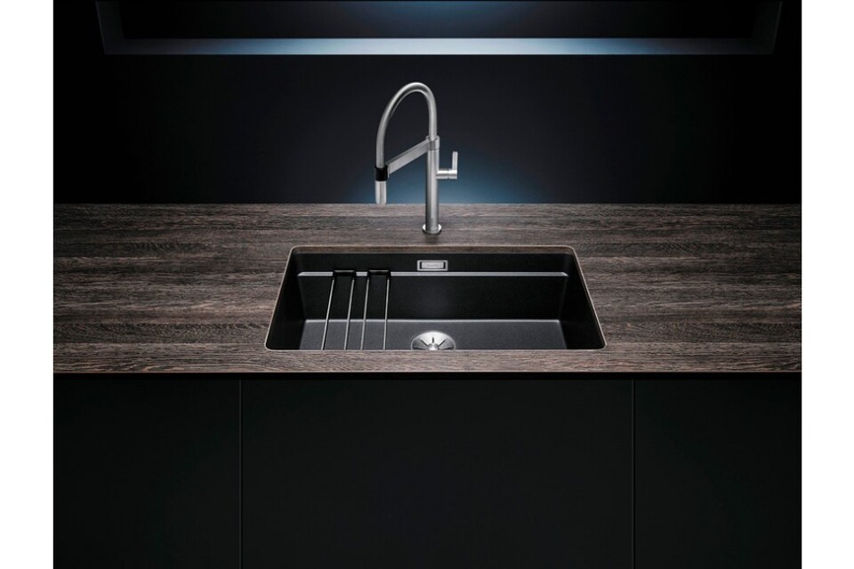 Чаша Etagon имеет небольшие выступы по бокам, о которые невозможно удариться. При этом они служат опорой для двух входящих в комплект держателя. Они могут раздвигаться, но не скользят, поэтому надёжно фиксируют утварь. С ними можно слить воду в дуршлаге, дождаться высыхания чашек и тарелок или же установить на них разделочную доску, с которой всё будет смахиваться в чашу. Надёжная отводная арматура InFino может быть дополнена клапаном — автоматом, который задержит или сольёт воду в раковине.