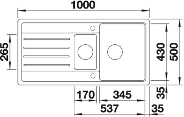 Данная модель состоит из основной чаши размером 34.5×43 см с глубиной 19 см и небольшой дополнительной, чьи параметры меньше — 17×26.5 см с глубиной 12 см. Последнюю чаще всего используют как дополнительную, например, для мытья столовых приборов, небольших по размеру продуктов (грибов, ягод и т.п.) или для сушки. Направляющие крыла ведут в неё, поэтому вся влага с посуды стекает именно в малую чашу. При желании на переднюю часть конструкции может быть установлен клапан-автомат.