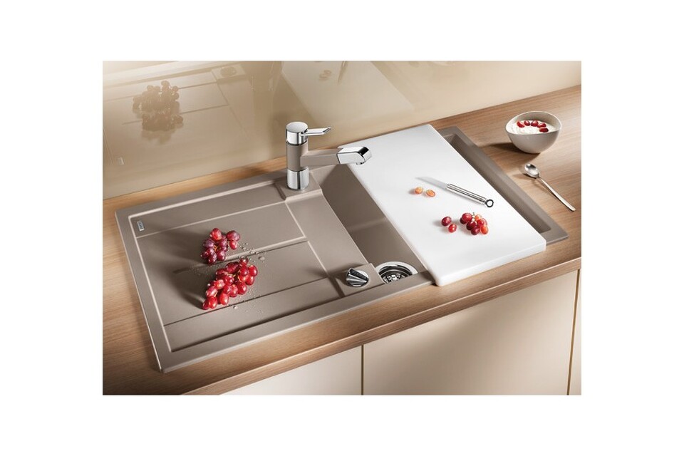 Каменная мойка Blanco Metra 5S имеет имеет более десятка цветовых решений от светлого песочного до стильного кофейного. Для любителей классики предлагаются белый и угольно-черный. Чаша модели прямоугольная, а крыло имеет рельефную поверхность, облегчающую сушку посуды, размораживание и обработку продуктов питания.