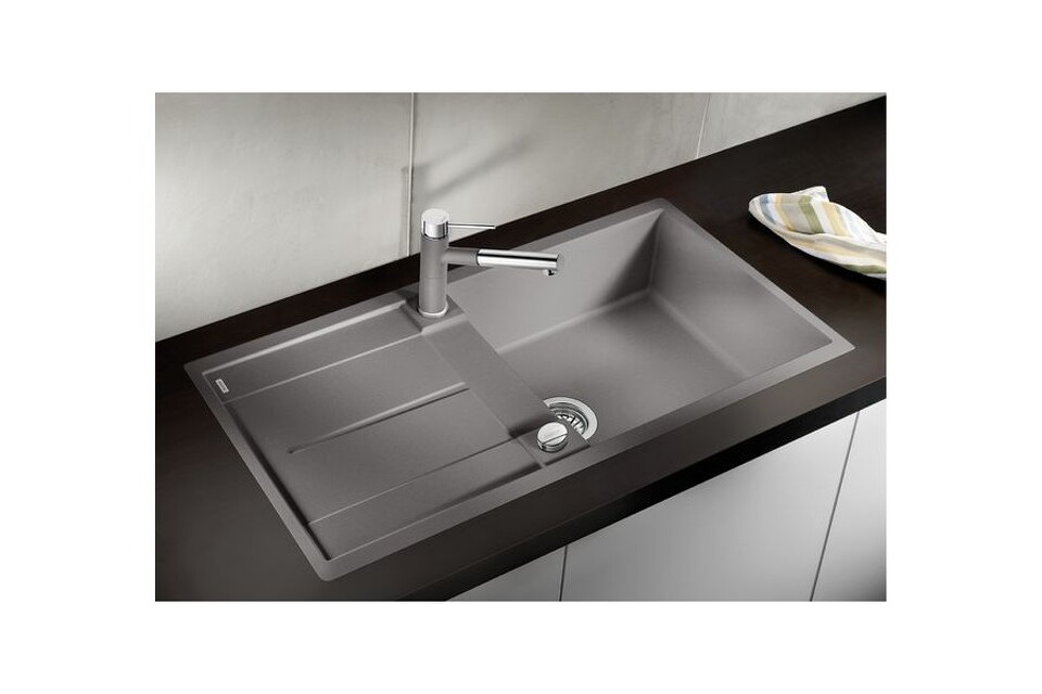 Мойка Бланко Metra XL 6 S-F выполнена из прочного материала Silgranit PuraDur, который отличается особой долговечностью к перепаду температур, истиранию. Изделие предназначено для установки в кухонный шкаф шириной 60 см. Глубина чаши — 19 см.