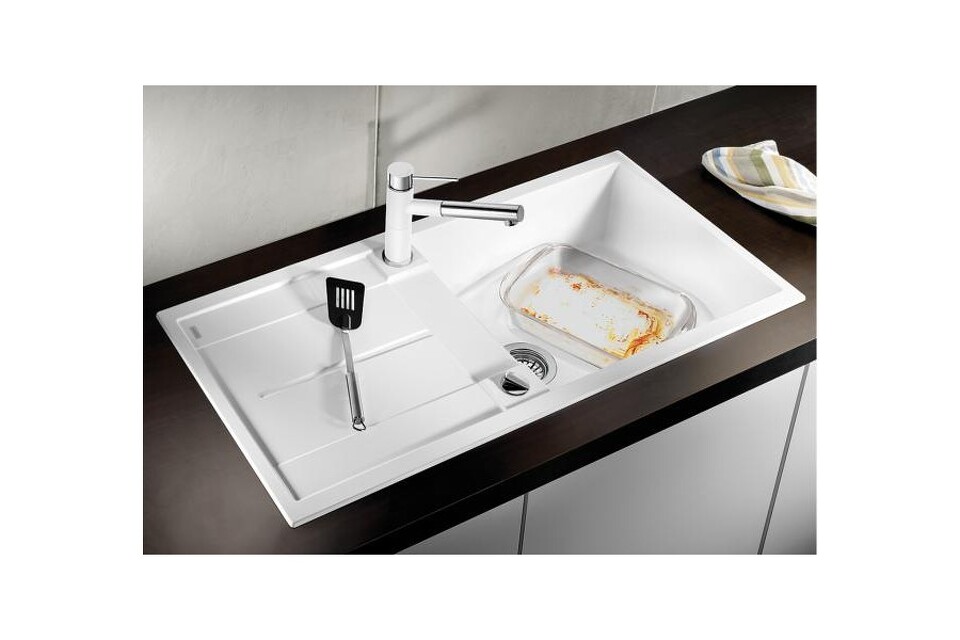 Мойка Blanco Metra XL 6S предусматривает в себе просторную чашу и вместительное крыло и предназначена для установки на кухонные шкафы от 60 см шириной. Прямоугольная форма и средняя глубина позволяют удобно разместить большой объем посуды, габаритные кастрюли, крупные блюда, обработать большое количество овощей и других продуктов.