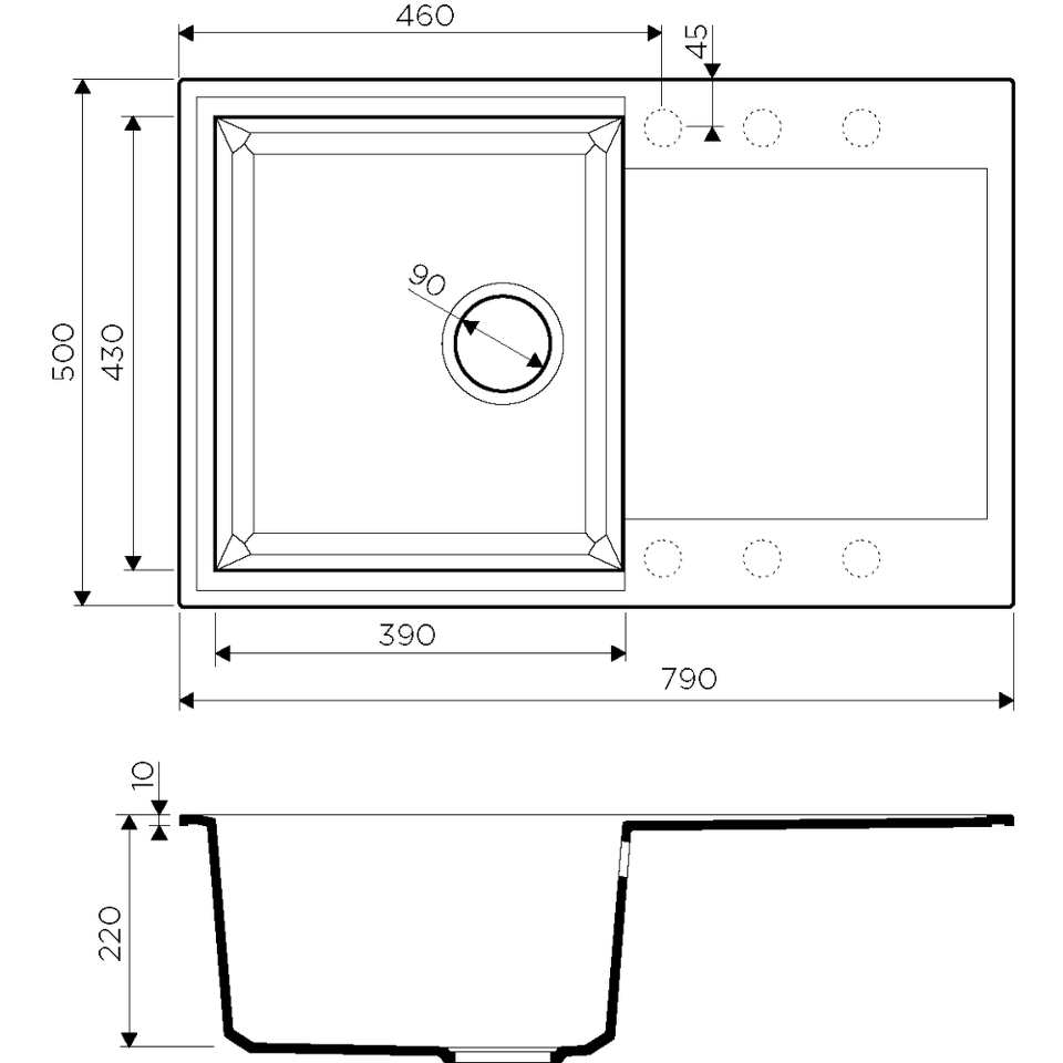 Отверстие под смеситель Нет