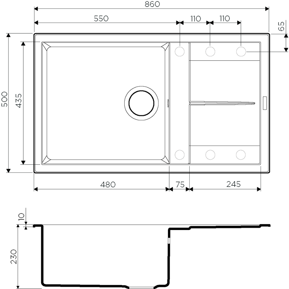 Отверстие под смеситель Нет