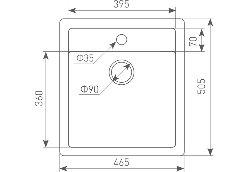 Благодаря большой чаше, но при этом небольшим габаритам, модель PLATZ 465 прекрасно подойдёт для небольшой семьи или холостятской квартиры, куда могут часто заглядывать гости. Квадратная форма позволяет использовать мойку с максимальной отдачей. Такая мойка будет органично смотреться в интерьере каждой кухни – она будет геометрически перекликаться со столешницей прямоугольной формы и выгодно контрастировать с поверхностью округлых форм. При размещении посуды разных габаритов, такая форма окажется особенно удобной - каким бы не был формат тарелки или чашки, они прекрасно и устойчиво встанут внутри чаши. Ещё одним явным преимуществом является глубина раковины в 21 см., в которую без труда поместятся набор посуды на 4 персоны и пара грязных сковородок, с кастрюлей в придачу. Верхний бортик является не только приятным дополнением к столь функциональной конструкции, но и позволяет с удобством разместить моющие средства, губки или дозатор для моющих средств непосредственно на поверхности мойки.