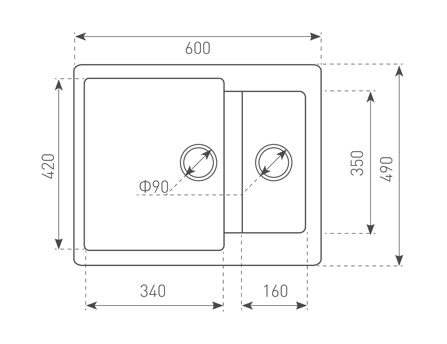 Модель RECHTECK 600.2 – это эргономичная мойка с двумя чашами. Она имеет габаритные размеры 600*490 мм и устанавливается на шкаф 60 см. Параметры большой чаши составляют 340*420 мм, тогда как малой 160*350 мм. Вторая чаша – выполняет функцию дополнительного рабочего инструмента на кухне. В ней можно мыть овощи и фрукты, размораживать мясо, складывать чистую посуду, а также установить ёмкость, куда можно складывать продукты, нарезанные на разделочной доске, которую, кстати, можно расположить тут же, на крыле мойки. Данная модель занимает меньше места, нежели такая же, но с крылом, при этом ни в чем, не уступая ей по функционалу. Поверхность мойки устойчива к механическим повреждениям, воздействию ультрафиолета, щелочей и кислот. Материал обладает всеми необходимыми гигиеническими свойствами. Он совершенно безопасен с точки зрения экологии и в течение длительного времени не теряет своих первоначальных эксплуатационных качеств.