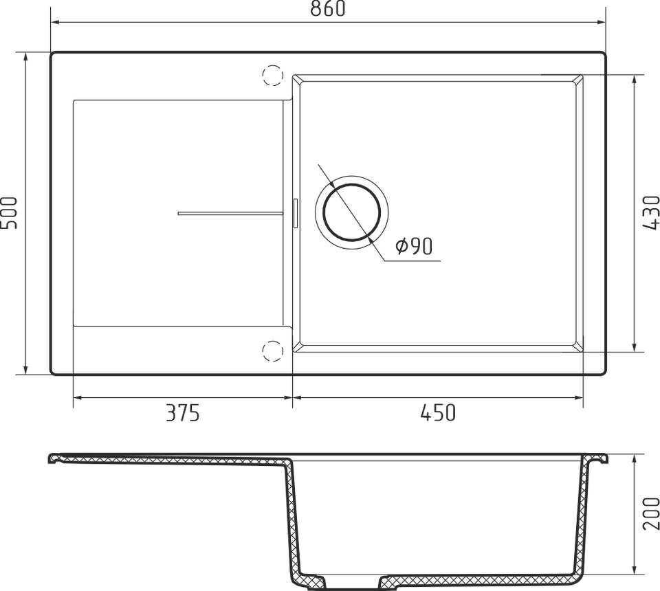 Материал мойки Камень
