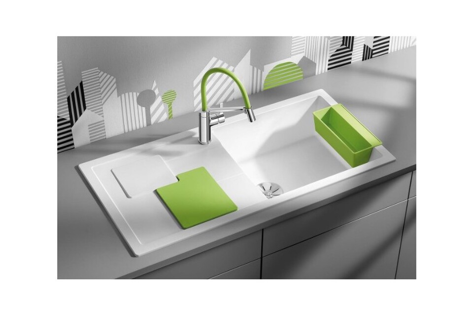 Данная модель оснащена аксессуарами цвета киви, которые входят в комплект. Их форма достаточно нетривиальна и вписывается в общую конструкцию изделия. Например, многофункциональная гибкая разделочная доска SITYPad идеально дополняет линии крыла и позволяет быстро нарезать продукты. А коландер SITYBox является отличным местом для хранения. В неё можно поместить средства для мытья, например, губки, щётки и гели. Эти аксессуары можно мыть в посудомоечной машине, поскольку они выдерживают воздействие высоких температур до 100 градусов.