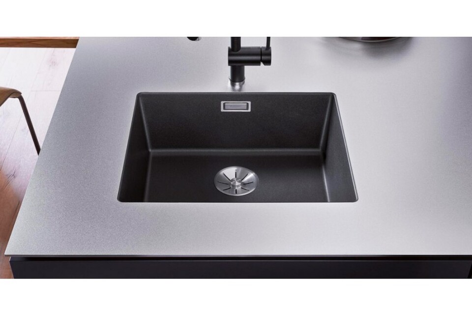 Данная модель лишена крыла, поэтому не заберёт рабочую поверхность, что немаловажно. При этом монтаж мойки Blanco SUBLINE 500-U SILGRANIT отводная арматура InFino осуществляется под столешницу. Значит, если вода будет попадать на поверхность рядом, то она будет скатываться прямо в раковину, без лишнего барьера. Кроме того, такой способ установки визуально чище.