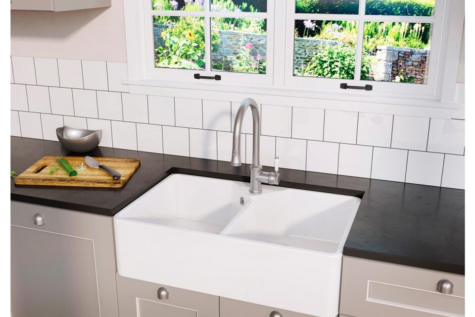 Монтируется в шкаф шириной 80 см, при этом передний край остается открытым, что выглядит необычно и стильно. Особенность Бланко Villae Double — две глубокие чаши, которые позволяют выполнять несколько задач одновременно.