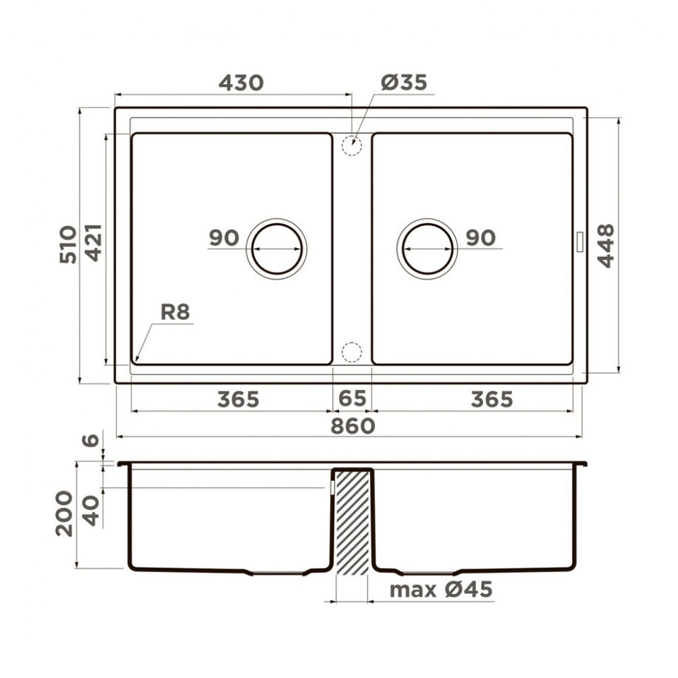 • Материал выдерживает высокие температуры до 280°С (но не стоит ставить на поверхность мойки горячие сковородки и кастрюли, т.к их температура может достигать 500°С);