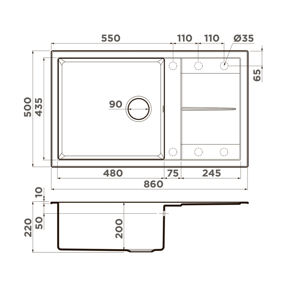• Материал выдерживает высокие температуры до 280°С (но не стоит ставить на поверхность мойки горячие сковородки и кастрюли, т.к их температура может достигать 500°С);