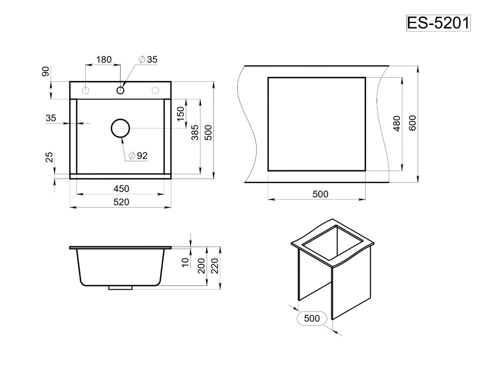 Фото Кварцевая мойка GRANULA 5201, ТУРМАЛИН