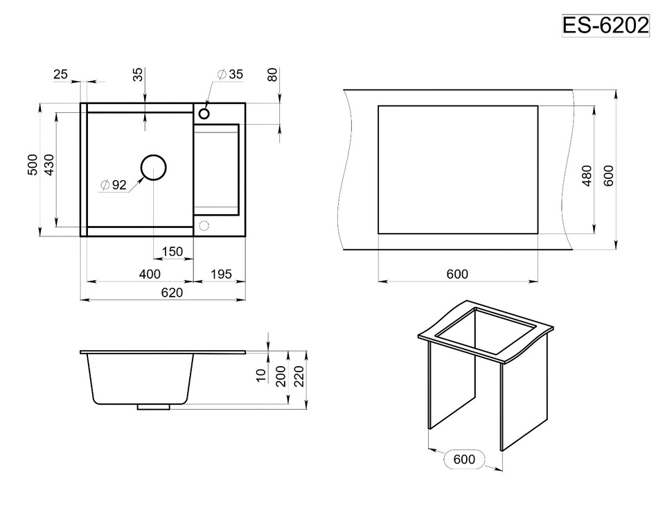 Кварцевая мойка GRANULA 6202, БАЗАЛЬТ
