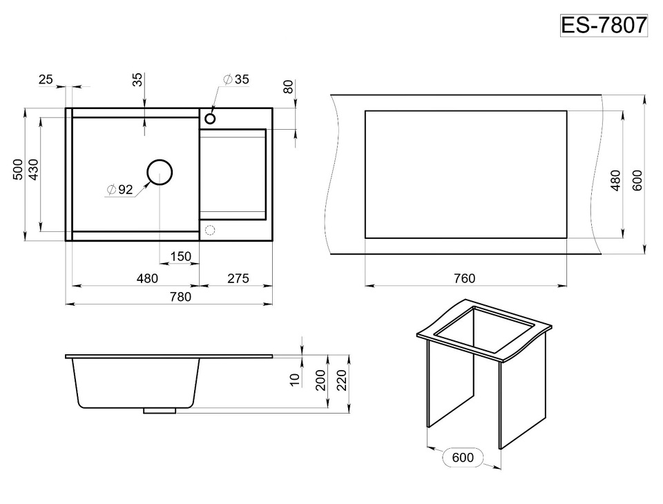 Фото Кварцевая мойка GRANULA 7807, ГРАФИТ