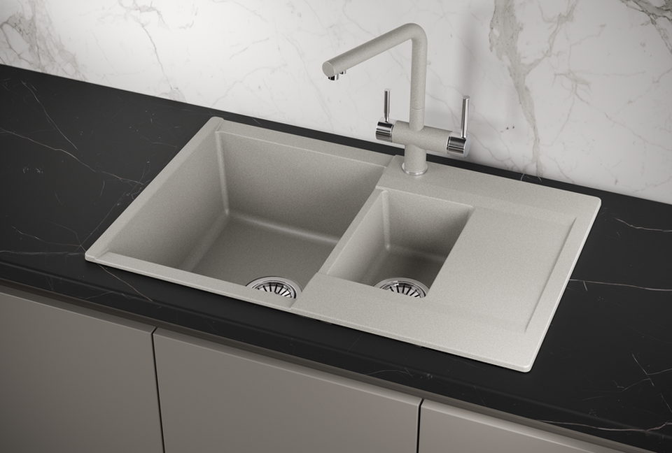 Представляем Granula Estetica - двойную кварцевую мойку с 7 вариантами цветов и разделочной доской из ясеня в комплекте. Прямоугольная форма, крыло, перелив и гарантия на 5 лет - все это для вашего удобства и комфорта. Подходит для измельчителей и установки на любой кухне. Сделано в России.